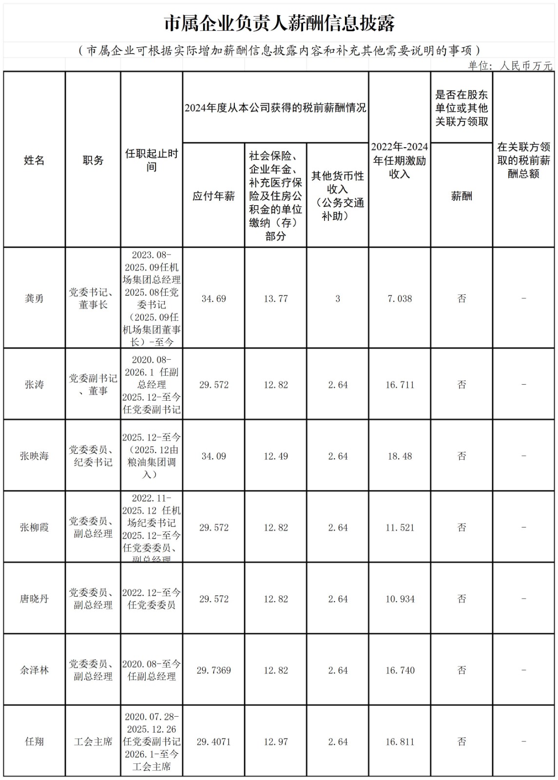 市屬企業(yè)負責人薪酬信息披露