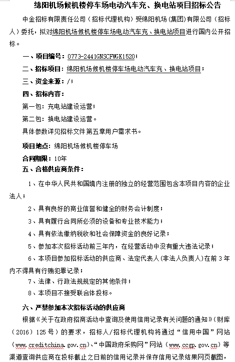 綿陽機(jī)場候機(jī)樓停車場電動汽車充、換電站項(xiàng)目招標(biāo)公告